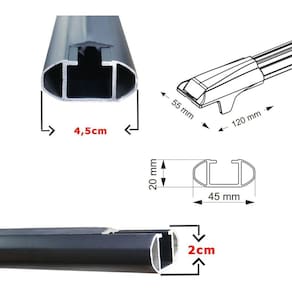 Fabricada em Alumínio Resistente Pintura Eletrostática na Cor Prata Parafusos em Aço Inox Borracha central para apoio de cargas Modelo com 4,5 cm de Largura e 2 cm de Espessura Não é Necessário Fazer Adaptações no Comprimento a peça é feita de acordo com o veículo Capacidade Máxima de 45 kgs Distribuídos
