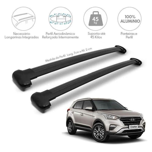 Compatível com todas as versões com longarinas integradas barras laterais : - creta 2017 - creta 2018 - creta 2019 - creta 2020 - creta 2021