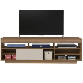 Rack Treviso Para Sala Tv 75" Com 6 Nichos Prateleira e Porta Pinho / Off White -