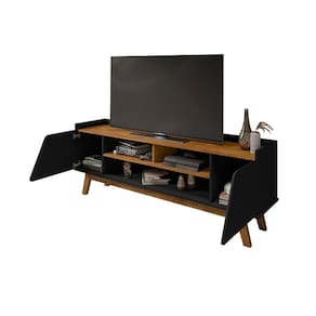 O Rack Turim 1.6 – Bechara Móveis possui um design marcante que mescla linhas diagonais em suas portas chanfradas em ângulo com dobradiças com o sistema softclose e pés de madeira maciça, proporcionando design retrô e distinto. Possui uma prateleira e três nicho que são ideia para acomodar os mais variados tipos de aparelho eletrônicos que complemente sua TV, bem como vários tipos de objetos de decoração.