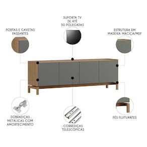 Rack TV 50 Pol 180cm 2 Portas 2 Gavetas Soleil Oak/Cinza F07 - Mpozenato