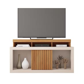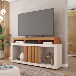 Rack Tv 55 Pol 136cm Bancada Com Rodízio Sala Lyara C01 - D`rossi Cor Freijó/off White - Branco