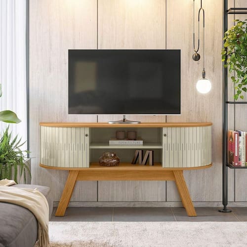 Rack Tv 55 Pol 136cm Bancada Para Sala Rylan Cumaru/opala M20 - D'rossi O Rack Rylan na Cumaru e Opala é ideal para ambientes compactos que não abrem mão de estilo e funcionalidade. Com 136 cm de largura, acomoda TVs de até 55? e suporta até 50 kg distribuídos. Sua estrutura é composta por chapas de MDP/MDF com espessura de 15mm e 25mm, oferecendo resistência e durabilidade. O acabamento em pintura UV realça a beleza natural da peça. Possui 2 portas deslizantes flexíveis em MDF, com puxadores em poliestireno, garantindo praticidade no dia a dia. Internamente, conta com 1 prateleira ideal para eletrônicos ou objetos decorativos. Os pés em madeira conferem um toque elegante ao design moderno. Fixação com sistema minifix, que facilita a montagem e garante firmeza à estrutura. Uma excelente escolha para quem busca um rack funcional, compacto e com ótimo custo-benefício. Dimensões do Produto: Altura: 68 cm Largura: 136 cm Profundidade: 36 cm Peso: 18 kg Especificações do Produto: Material da Estrutura: MDP/MDF Espessuras das Chapas: 15mm/ 25mm Acabamento: Pintura UV Escala de Brilho: Fosco/Brilho Peso Suportado: 50 kg distribuídos Suporta TV de até: 55 Polegadas Possui Prateleiras: Sim Quantidade de Prateleiras: 1 Prateleira Possui Portas: Sim Quantidades de Portas: 2 Portas Tipo de Portas: Deslizante Material da Porta: MDP Possui Gavetas: Não Possui Nichos: Não Possui Puxadores: Sim Material dos Puxadores: Poliestireno Possui Espelho: Não Possui Pés: Sim Material dos Pés: Madeira Diferenciais: Design moderno; Detalhes curvos; Portas deslizantes flexíveis em MDF ; Paineis em MDP 15mm; Pés em MDP 25mm; Fixação com minifix. Sistema de Montagem: Cavilhas/Parafusos/Minifix Manual de Montagem: Sim Complexidade da Montagem: Alta Montagem: Recomendamos que seja feita por um profissional Garantia: 90 dias contra defeito de fabricação Instruções de Limpeza: Utilizar um pano limpo e levemente úmido Quantidade de Volumes 1 Caixa Medida das Embalagens Caixa 1: 140x37,7x10,2cm Entrega: É feita somente até o térreo ou portaria. Confira sempre as medidas das embalagens para assegurar que o produto passe por portas e escadas do local.