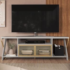Rack Bancada P1033, estilo industrial e praticidade para sua sala. Estrutura MDP de 15 mm e pés/base em metal (pintura epóxi). Composto por portas em tela de aço e dobradiças metálicas, pés em formato diferenciado e nichos decorativos funcionais, além de ponteiras em plástico para evitar o atrito do móvel com o piso. Suporta com segurança TVs de até 60 polegadas. Produto será entregue em 01 volume.