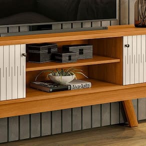 Rack Tv 75 Pol 183cm Bancada Para Sala Enzari M20 - D'rossi Cor Cianmomo E Off White O Rack Enzari é a escolha perfeita para quem busca design moderno, funcionalidade e sofisticação em um só móvel. Ideal para TVs de até 75 polegadas, possui 183 cm de largura e estrutura em MDP 15 e 25 mm, com acabamento em pintura DIP ( Inverse Printing), que oferece brilho intenso e alta resistência. O tampo e a base com detalhes curvos agregam requinte ao ambiente. Conta com duas portas deslizantes em MDF, que otimizam o espaço com praticidade e elegância, além de nichos abertos e uma prateleira interna para acomodar eletrônicos e objetos decorativos. Os puxadores cromados em poliestireno dão um toque de sofisticação, enquanto o passa-fios integrado facilita a organização dos cabos. Ideal para transformar sua sala em um ambiente contemporâneo e organizado, suportando até 50 kg distribuídos. Dimensões do Produto: Altura: 69 cm Largura: 183 cm Profundidade: 38 cm Peso: 30 kg Especificações do Produto: Material da Estrutura: MDP 15mm/ 25mm Acabamento: Pintura DIP ( Inverse Printing). Escala de Brilho: Brilho Peso Suportado: 50 kg distribuídos Suporta TV de até: 75 Polegadas Possui Portas: Sim Quantidades de Portas: 2 Portas Tipo de Portas: Deslizante Tipo de Puxadores: Poliestireno Cromado Possui Gavetas: Não Possui Nichos: Sim Quantidade de Nichos: 2 Nichos Possui Espelho: Não Possui Prateleiras: Sim Quantidade de Prateleiras: 1 Prateleira Possui Pés: Sim Possui Rodízios: Não Possui Passa Fios: Sim Diferenciais: Design moderno; Portas deslizantes íveis em MDF; Tampo e base com detalhes curvos. Sistema de Montagem: Girofix, Parafusos Manual de Montagem: Sim Complexidade da Montagem: Média Montagem: Recomendamos que seja feita por um Garantia: 90 dias contra de fabricação Instruções de Limpeza: Utilizar um pano limpo e levemente úmido Quantidade de Volumes 1 Caixa Medida das Embalagens Caixa 1: 187,7x40,2x11,7cm : É feita somente até o térreo ou portaria. Confira sempre as medidas das embalagens para assegurar que o produto passe por portas e escadas do .