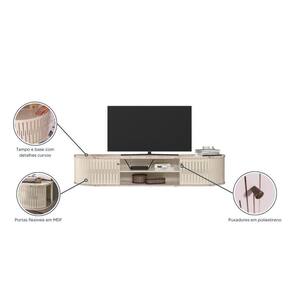 Rack Tv 75 Pol 183cm Bancada Suspenso Ripado Aurenzo Calacata/off White M20 - D'rossi O Rack Bancada Suspenso Aurenzo de 183cm na Calacata e Off White é a escolha ideal para quem deseja unir estilo moderno, praticidade e durabilidade. Desenvolvido para TVs de até 75 polegadas, oferece estrutura robusta em MDP/MDF com espessuras de 15mm, 25mm e acabamento em pintura UV. Seu design ripado frontal agrega charme ao ambiente, enquanto as portas curvas deslizantes flexíveis em MDF garantem um visual limpo e funcional. A prateleira interna permite acomodar eletrônicos e objetos decorativos com organização. Os puxadores em poliestireno proporcionam manuseio confortável, e o sistema de fixação por minifix assegura montagem firme e precisa. Sem pés e com estrutura suspensa, é ideal para otimizar espaços e facilitar a limpeza. Suporta até 15 kg distribuídos. Com estilo contemporâneo e materiais de qualidade, o Aurenzo é perfeito para quem busca sofisticação, praticidade e uma sala mais moderna e funcional. Dimensões do Produto: Altura: 31 cm Largura: 183 cm Profundidade: 33 cm Peso: 22 kg Especificações do Produto: Material da Estrutura: MDP/MDF Espessuras das Chapas: 15mm/25mm Acabamento: Pintura UV Escala de Brilho: Brilho/Fosco Peso Suportado: 15 kg distribuídos Suporta TV de até: 75 Polegadas Possui Prateleiras: Sim Quantidade de Prateleiras: 1 Prateleira Possui Portas: Sim Quantidade de Portas: 2 Portas Tipo de Porta: Deslizante Possui Puxadores: Sim Material dos Puxadores: Poliestireno Possui Gavetas: Não Possui Nichos: Não Possui LED: Não Possui Espelhos: Não Possui Pés: Não Diferenciais: Portas curva deslizantes flexíveis em MDF ; Paineis em MDP 15mm; Fixação com minifix. Sistema de Montagem: Cavilhas/Parafusos/Minifix. Manual de Montagem: Sim Complexidade da Montagem: Média Montagem: Recomendamos que seja feita por um profissional Garantia: 90 dias contra defeito de fabricação Instruções de Limpeza: Utilizar um pano limpo e levemente úmido Quantidade de Volumes 1 Caixa Medida das Embalagens Caixa 1: 187,7x35,3x10,7cm Entrega: É feita somente até o térreo ou portaria. Confira sempre as medidas das embalagens para assegurar que o produto passe por portas e escadas do local.