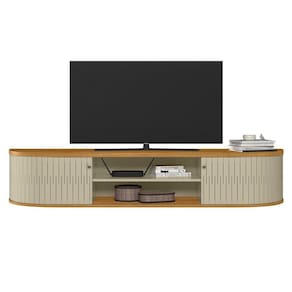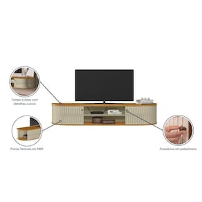 Rack Tv 75 Pol 183cm Bancada Suspenso Ripado Aurenzo M20 - D'rossi Cor Cumaru E Opala O Rack Bancada Suspenso Aurenzo de 183cm é a escolha ideal para quem deseja unir estilo moderno, praticidade e durabilidade. Desenvolvido para TVs de até 75 polegadas, oferece estrutura robusta em MDP/MDF com espessuras de 15mm, 25mm e acabamento em pintura UV. Seu design ripado frontal agrega charme ao ambiente, enquanto as portas curvas deslizantes íveis em MDF garantem um visual limpo e funcional. A prateleira interna permite acomodar eletrônicos e objetos decorativos com organização. Os puxadores em poliestireno proporcionam manuseio confortável, e o sistema de fixação por minifix assegura montagem firme e precisa. Sem pés e com estrutura suspensa, é ideal para otimizar espaços e facilitar a limpeza. Suporta até 15 kg distribuídos. Com estilo contemporâneo e materiais de qualidade, o Aurenzo é perfeito para quem busca sofisticação, praticidade e uma sala mais moderna e funcional. Dimensões do Produto: Altura: 31 cm Largura: 183 cm Profundidade: 33 cm Peso: 22 kg Especificações do Produto: Material da Estrutura: MDP/MDF Espessuras das Chapas: 15mm/25mm Acabamento: Pintura UV Escala de Brilho: Brilho/Fosco Peso Suportado: 15 kg distribuídos Suporta TV de até: 75 Polegadas Possui Prateleiras: Sim Quantidade de Prateleiras: 1 Prateleira Possui Portas: Sim Quantidade de Portas: 2 Portas Tipo de Porta: Deslizante Possui Puxadores: Sim Material dos Puxadores: Poliestireno Possui Gavetas: Não Possui Nichos: Não Possui LED: Não Possui Espelhos: Não Possui Pés: Não Diferenciais: Portas curva deslizantes íveis em MDF ; Paineis em MDP 15mm; Fixação com minifix. Sistema de Montagem: Cavilhas/Parafusos/Minifix. Manual de Montagem: Sim Complexidade da Montagem: Média Montagem: Recomendamos que seja feita por um Garantia: 90 dias contra de fabricação Instruções de Limpeza: Utilizar um pano limpo e levemente úmido Quantidade de Volumes 1 Caixa Medida das Embalagens Caixa 1: 187,7x35,3x10,7cm : É feita somente até o térreo ou portaria. Confira sempre as medidas das embalagens para assegurar que o produto passe por portas e escadas do .