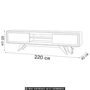 Possui duas portas convencionais com dobradiças com amortecedores e três prateleiras internas, permitindo melhor de aparelhos, controles e acessórios de forma prática.