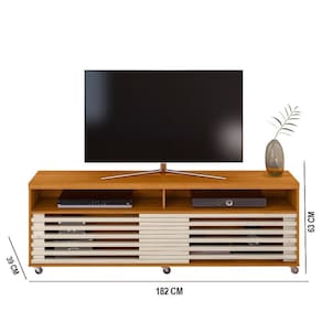 Rack Tv 75pol 182cm Bancada Para Sala Nerion M20 - D'rossi Cor Cinamomo E Off White O Rack TV 65 Pol Nerion, une design contemporâneo, resistência e funcionalidade, ideal para quem busca sofisticação com praticidade. Com 182 cm de largura, sua estrutura é composta por painéis em MDP de 15, 25 e 40mm, com acabamento em pintura UV, que proporciona maior durabilidade e acabamento impecável. Conta com duas portas deslizantes frisadas, que se sobrepõem, otimizando o espaço com elegância. Possui dois nichos abertos, ideais para eletrônicos e objetos decorativos, além de pés com rodízios de silicone, que facilitam o deslocamento sem riscar o piso. Suporta até 130 kg distribuídos e é perfeito para compor salas modernas e organizadas. Fixação com minifix garante montagem firme e segura. O Rack Nerion combina facilmente com diversos estilos de decoração. Transforme seu espaço com elegância e eficiência. Dimensões do Produto: Altura: 63 cm Largura: 182 cm Profundidade: 39 cm Peso: 38 kg Especificações do Produto: Material da Estrutura: MDP 15mm/ 25mm Acabamento: Pintura UV Escala de Brilho: Brilho/Fosco Peso Suportado: 130 kg distribuídos Suporta TV de até: 65 Polegadas Possui Prateleiras: Não Possui Portas: Sim Quantidades de Portas: 2 Portas Tipo de Portas: Deslizante Possui Gavetas: Não Possui Nichos: Sim Quantidade de Nichos: 2 Nichos Possui Espelho: Não Possui Pés: Sim Tipo de Pés Rodízio Diferenciais: Design moderno; Portas deslizantes frisadas que se sobrepões; Rodízios de Silicone; Paineis em MDP 15, 25 e 40mm; Fixação com minifix. Sistema de Montagem: Cavilhas/Parafusos/Minifix Manual de Montagem: Sim Complexidade da Montagem: Média Montagem: Recomendamos que seja feita por um profissional Garantia: 90 dias contra defeito de fabricação Instruções de Limpeza: Utilizar um pano limpo e levemente úmido Quantidade de Volumes 2 Caixas Medida das Embalagens Caixa 1: 186x40x7,4cm; Caixa 2: 187x39x8cm Entrega: É feita somente até o térreo ou portaria. Confira sempre as medidas das embalagens para assegurar que o produto passe por portas e escadas do local.