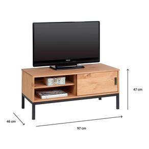 Apresentamos o elegante rack em madeira maciça, perfeito para complementar qualquer ambiente com um toque de estilo industrial. Este rack possui duas prateleiras espaçosas, oferecendo amplo espaço de armazenamento para exibir seus objetos de decoração favoritos, livros, dispositivos eletrônicos e muito mais. As duas portas de correr adicionam um charme adicional ao rack, permitindo que você exiba ou oculte facilmente os itens guardados. Feitas de madeira maciça, as portas deslizam suavemente, proporcionando facilidade de uso e um visual contemporâneo.
