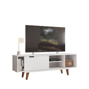 Este é um Rack Vintage Oregon, deixando uma sala iluminada e com personalidade. Possui porta deslizante em mdf com puxador usinado, vários compartimentos abertos para colocar objetos, decoração, livros e eletrônicos. O diferencial são os pés vintage chanfrados em madeira envernizados. Os produtos da Olivar Móveis não servem apenas para preencher os espaços da sua casa, mas sim para transformar em um lugar aconchegante, atraente e com um design moderno, sem abrir mão da qualidade.