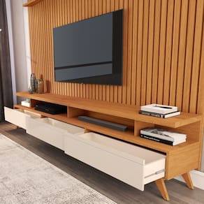 Rack Vivare com Painel Versátil para Tv até 90 Polegadas 220cm Nature com OffWhite - Rede Móveis - Rack com Painel para TV até 90 Polegadas