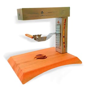 A base da racleteira premium é fabricada em madeira maciça com incríveis 50mm de espessura que evidencia todas as variações peculiares de sua árvore de origem, a lyptus®. É uma madeira nobre que possui grande resistência, ótimo acabamento e uma beleza única. Possui o tratamento especial contra fungos e bactérias, que impede completamente a proliferação de microrganismos. Para agregar ainda mais utilidades ao produto, de um lado a base tem a superfície lisa, que deve ser utilizada com a racleteira ou como uma tábua de corte. Do outro ela possui um design curvo, incomum e extravagante, que pode ser utilizada para decoração, tábua de frios, frutas, entre suas diversas utilidades.