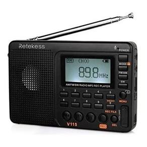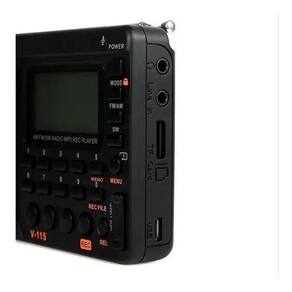 Descrição O rádio portátil retekess v-115 tem todas as funções que você precisa: Rádio com banda FM/AM/SW, também tem 3 modos de gravação, pode reproduzir arquivos mp3 e wma. Você pode gravar sua música favorita e também pode usar o microfone embutido para gravar sons ambiente. - Pesquise e armazene automaticamente estações de rádio - Pesquise e armazene manualmente estações de rádio - 100 predefinições de estações - Banda AM pode escolher 9k/10k - Mp3 player: pode reproduzir música mp3 armazenada no cartão TF - Modo de repetição: todos/um/pasta - Estação de rádio/seleção de música rápida: insira diretamente a frequência de rádio ou a música número - Alto-falantes de alta qualidade com diafragma de graves, o som é claro e alto - Entrada aux de 3,5 mm: suporte a conexão de dispositivos de áudio externos como alto-falantes - Três modos de gravação: gravação mic, gravação em linha, gravação fm. - Três qualidades de gravação estão disponíveis: simples 64kbps ; qualidade 96kbps ; super 128kbps - 4 idiomas incorporados: chinês, inglês, espanhol, russo - Temporizador de suspensão até 90 minutos - Retro-iluminação LCD ajustável - Equipado com bateria de lítio bl-5c removível e recarregável de 1000mah - Rádio portátil Especificação do radio: Marca: retekess Modelo: v-115 Frequências: FM: 87-108 mhz AM: 522-1710khz 9k , 520-1710khz 10k SW: 4.75-21,85 mhz Memória: cartão tf, máximo 32gb não incluído Formato de áudio: mp3, wma Potência de saída: 2w fonte de Alimentação: bl-5 bateria de lítio c 1000mah incluída Carregamento: DC 5 V, Interface USB pode ser carregada junto ao USB de seu PC ou notebook DC 5 V 500mA Cor: preto Tamanho do corpo: 12,0 8,0 2,0 cm/4,72 3,15 0,78 pol. Peso do item principal: 160g/5.64oz Tamanho da embalagem: 16 10 4cm/6,29 3,93 1,57in Peso da embalagem: 220g Conteúdo da embalagem: - Rádio retekess v- 115 rádio - Bat. Lithium 1000mAh - Cabo de carregamento usb - Alça de mão com suporte - Manual de usuário em inglês de rádio ulti-band Homologação Anatel: 080281811799