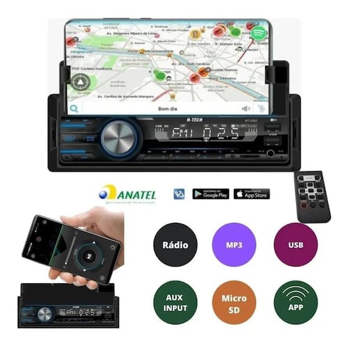 O som automotivo da H-tech modelo Ht 1223 vai ser o seu melhor companheiro para aumentar o volume e desfrutar do caminho. Sempre pronto para você mergulhar na música que mais gosta e com o melhor som. Os seus passeios de carro serão mais divertidos