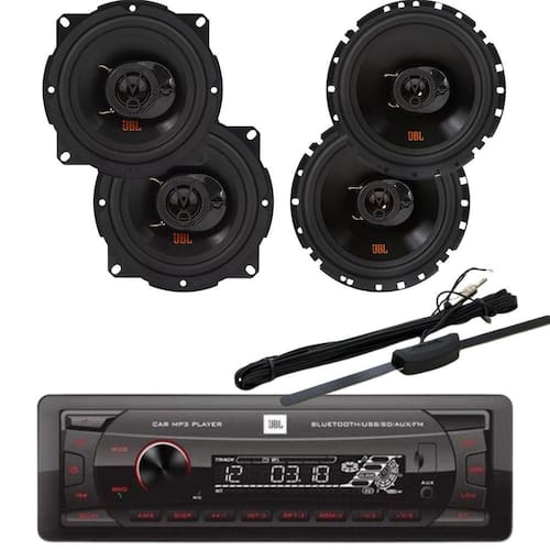 Eleve o som do seu veículo com o Kit Rádio JBL Celebrity 100. Este conjunto inclui o Rádio JBL Celebrity 100, equipado com Bluetooth, USB, SD, FM e entrada AUX, bem como um par de Alto Falantes JBL 6TRFX55 e outro par de Alto Falantes JBL 5TRFX55, fornecendo uma experiência sonora excepcional. O Rádio JBL Celebrity 100 oferece a conveniência do streaming de música via Bluetooth, reprodução de arquivos locais a partir de USB ou SD, sintonização de estações FM e conexão com outros dispositivos por meio da entrada AUX. Com um design moderno e controles intuitivos, este rádio transforma suas viagens em uma experiência musical envolvente. Os Alto Falantes JBL 6TRFX55 proporcionam impressionantes 110 Watts RMS por par, produzindo agudos nítidos, médios claros e graves robustos. Enquanto isso, os Alto Falantes JBL 5TRFX55 complementam a experiência com qualidade de som JBL. Além disso, uma antena assegura uma recepção de sinal clara para suas estações de rádio favoritas. Este kit é ideal para quem busca um sistema de áudio de alta qualidade e potência. Eleve sua experiência musical com o Kit Rádio JBL Celebrity 100.