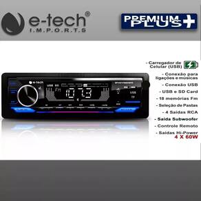 1 din Carregador de celular usb Conexão para ligações e músicas Conexão usb Conexão bluetooth Ubs e sd card 18 memórias fm Seleção de pastas 4 saídas rca Saída subwoofer Controle remoto multifuncional / controle remoto via app Saída hi-power 4 x 60w Display lcd Função de relógio sistema 24 horas Memorização automáticase cortar o fornecimento de energia, a unidade pode lembrar as últimas configurações gravadas, tais como: volume, banda de fm e assim por diante. Função assistente de voz. Função lound Escolha a cor rgb da iluminação dos botões.