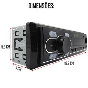 Especificações técnicas: - auto rádio mp2 com bluetooth; - compatível com controle a longa distância; - sd card tf / bluetooth / auxiliar; - display led; - painel fixo; - função bluetooth; - função de rádio; - suporte cartão e pendrive de até 32gb; - compatível com mp3 / wma / wav; - 2 entradas usb, sendo uma delas 2.1a para carregamento de celular; - iluminação dos botões: azul; - sintonização de rádio fm com memorização automática; - seleção de 18 estações fm; - potência: 4 canais de 25w; - equalização pop / rock / classic e flat; - possui 2 saídas rca; - troca de pastas; - modo de reprodução: repetida / aleatória / intro; - controle remoto; - : 1 ano. Conteúdo da embalagem: - rádio; - controle remoto; - 2 chicotes de instalação; - manual do usuário. Homologação Anatel: 025931304858