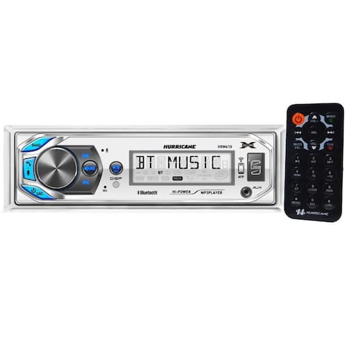 ESPECIFICAÇÕES:- Sistema de Rádio estéreo marinizado;- Rádio estéreo FM com 30 estações de memória;- Áudio com conexão sem fio BT;- Leitor de USB;- Tomada de entrada Aux (3.5mm);- Conexão e Reprodução de áudio por dispositivos externos;- Reprodução de arquivos digitais de áudio MP3;- Painel com Visor em LCD;- Reprodução Memória/Repetir/Aleatória/Intro;- Controle do Mute/Relógio;- ID3 Tag Song para leitura de nome dos artistas e títulos de música;- Saída de 1 par de RCA + 2x Subwoofer;- Configuração eletrônico de áudio equalizador (EQ);- Armazenagem Automática de Memória pré-programada/Modo Scan;- Compatível com Xbass, App Android, App IOS & Modo Demo;- Recarregador USB;- Iluminação noturna;- Potência Máxima: 4x45W;- Conector ISO;- Seletor Modo Estéreo/Mono;- Controle de Áudio: 10EQ/Fader/Balanço, Agudo/Baixo/Grave;- EQ pré-programado: Flat/Pop/Rock/Class/Off;- Dimensões do produto: 4,5 x 7,1 x 1,97 polegadas.CONECTIVIDADE BT Sem Fio:- BT sem fio embutido para reprodução de música;- Microfone embutido para chamadas sem usos de mãos;- Compatível com todos os seus dispositivos sem fio com BT;- Versão do BT: 4.2