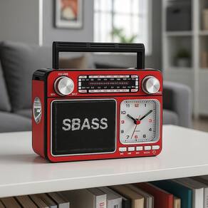 Rádio Portátil Recarregável Bluetooth SBASS com Relógio, USB, TF e AM/FM - Vermelho O Rádio Portátil SBASS é a escolha ideal para quem busca estilo retrô, funcionalidade e versatilidade em um único produto. Com design clássico amadeirado e alça para transporte, ele combina modernidade com um visual vintage que dá um charme especial ao ambiente. Equipado com Bluetooth, ele permite conexão sem fio com celulares, tablets e notebooks para reprodução de músicas. Também conta com entrada USB e slot para cartão TF microSD , possibilitando tocar arquivos MP3 diretamente. O rádio possui sintonia para FM, AM e SW, garantindo acesso a uma ampla variedade de estações. Seu relógio ógico integrado traz ainda mais praticidade ao dia a dia. Pode ser com bateria recarregável inclusa ou com pilhas não inclusas , ideal para uso em casa, no trabalho, viagens ou acampamentos. Possui lanterna potente na parte lateral, ideal para acampamentos. Especificações Técnicas Conectividade: Bluetooth para conexão com dispositivos móveis Entradas: USB, cartão TF microSD para reprodução de MP3 RMS: 3.0-polegadas Alto-Falante 4 ohms 3W Bandas de rádio: FM / AM / SW Alimentação: bateria recarregável inclusa ou pilhas não inclusas Alto-falante integrado com som claro e boa potência Relógio ógico de quartzo integrado Função lanterna lateral embutida Controles frontais de volume, sintonia e funções Alça para transporte Design retrô com acabamento amadeirado AC/DC Alimentação AC: 110V/220V DC: 3V UM-1x2 PCS Bateria Não Inclusa Faixa de Frequencia FM: 87108MHz AM: 5221620KHzz SW1-2: 3.222.0MH Diferenciais do Produto Combina rádio, caixa de som Bluetooth, relógio e lanterna em um só equipamento Portátil, leve e fácil de transportar Ideal para ambientes internos e externos Visual clássico que combina com qualquer ambiente Itens Inclusos 1x Rádio Portátil Recarregável 1xcabo de Energia 1x Alça para Transporte Código de Homologação Anatel: 005491708855 Marca: Não Informado