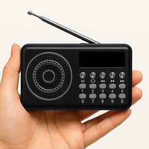 Possui sintonizador de rádio AM/FM, com antena retrátil para melhor recepção. O modelo funciona com bateria recarregável inclusa , oferecendo flexibilidade de uso em qualquer situação.