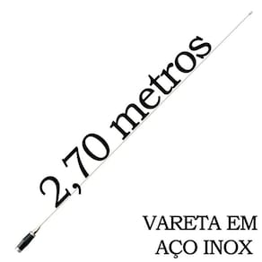 Antena Móvel 1/4 de onda indicada para comunicação em veículos equipados com rádio PX. Apresenta excelente rendimento, caracterizando-se como a antena de maior alcance em operação móvel e recomendada para comunicação na faixa cidadão (11 metros) e radioamadorismo (10 a 6 metros). Produzida em aço inox especial, submetido a tratamento térmico, que faz com que a haste se mantenha sempre reta. A base, com sistema de molas, ajuda a diminuir o impacto e aumenta a durabilidade da antena.