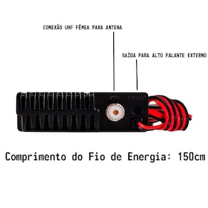 Especificações: - Frequência: 26.965 A 27.855 Mhz - Canais: 80 Canais - Potência De Transmissão: 3w E 6w Ajustável - Tensão De Alimentação: 13,8v - Impedância: 50 Ohms - Conector: Uhf, So-239 - Modulação: Am/Fm - Microfone: Eletreto Com Conector Rj45 - Código de Homologação Anatel: 13662-21-02250 - Peso do Produto: 675 gramas - Medidas: Altura: 3,5cm Comprimento: 12cm Profundidade: 9cm
