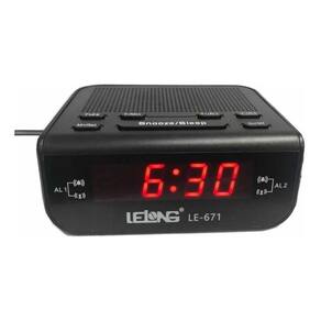 Rádio Relógio Digital Despertador Alarme Duplo Lelong Le-671 Relógio Despertador Digital Elétrico De Mesa Radio Am FmFácil de utilizar Definição simples do relógio para configurar a hora e o alarme sem necessitar de instruções- Regulagem de luminosidade Acorde ao som da sua estação de rádio favorita ou de um alarme Temporizador para adormecer ao som da sua música favorita Repetição do alarme para dormir mais um pouco Pilha de reserva assegura a conservação da memória da hora durante falhas de energiaO visor amplo permite uma fácil leitura do conteúdo no ecrã. Agora, pode ver as horas e o alarme facilmente, mesmo à distância. Ideal para pessoas de idade mais avançada ou com problemas de visão.Sintonizador FM/MWSintonizador estéreo FM/MW AM Definição simples do relógioA hora e o alarme são tão fáceis de configurar que provavelmente nem será necessário consultar o Manual de início rápido ou as Instruções de utilização. Basta observar os botões do rádio relógio para definir a hora e o alarme.Acorde com o rádio ou aviso sonoroDesperte ao som da sua estação de rádio favorita ou de um sinal sonoro. Defina o alarme no seu rádio relógio Lelong para acordar com a estação de rádio que ouviu por último ou escolha acordar com um sinal sonoro. Quando chegar a hora de despertar, o rádio relógioAlarme duploO sistema de áudio inclui duas horas de alarme diferentes. Defina uma hora de alarme para o acordar e outra hora de alarme para acordar outra pessoa.Repetir AlarmePara evitar que adormeça e se atrase, função de repetição do alarme. Se o alarme tocar e quiser dormir mais um pouco, basta premir uma vez o botão de repetição do alarme e voltar a dormir. Nove minutos depois o alarme volta a tocar. Pode continuar a premir o botão de repetição do alarme a cada nove minutos até o desligar totalmente.Temporizadoro temporizador permite-lhe decidir durante quanto tempo pretende ouvir música - ou uma estação de rádio à sua escolha - antes de adormecer. Basta definir um limite de tempo até 1 hora e escolher uma estação de rádio para ouvir enquanto adormece. Ean: 7894652429325