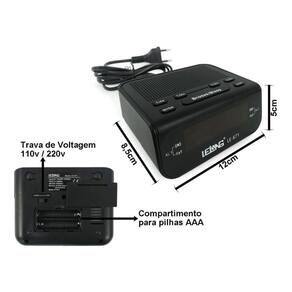 Rádio Relógio Digital Despertador Alarme Duplo Lelong Le-671 Relógio Despertador Digital Elétrico De Mesa Radio Am FmFácil de utilizar Definição simples do relógio para configurar a hora e o alarme sem necessitar de instruções- Regulagem de luminosidade Acorde ao som da sua estação de rádio favorita ou de um alarme Temporizador para adormecer ao som da sua música favorita Repetição do alarme para dormir mais um pouco Pilha de reserva assegura a conservação da memória da hora durante falhas de energiaO visor amplo permite uma fácil leitura do conteúdo no ecrã. Agora, pode ver as horas e o alarme facilmente, mesmo à distância. Ideal para pessoas de idade mais avançada ou com problemas de visão.Sintonizador FM/MWSintonizador estéreo FM/MW AM Definição simples do relógioA hora e o alarme são tão fáceis de configurar que provavelmente nem será necessário consultar o Manual de início rápido ou as Instruções de utilização. Basta observar os botões do rádio relógio para definir a hora e o alarme.Acorde com o rádio ou aviso sonoroDesperte ao som da sua estação de rádio favorita ou de um sinal sonoro. Defina o alarme no seu rádio relógio Lelong para acordar com a estação de rádio que ouviu por último ou escolha acordar com um sinal sonoro. Quando chegar a hora de despertar, o rádio relógioAlarme duploO sistema de áudio inclui duas horas de alarme diferentes. Defina uma hora de alarme para o acordar e outra hora de alarme para acordar outra pessoa.Repetir AlarmePara evitar que adormeça e se atrase, função de repetição do alarme. Se o alarme tocar e quiser dormir mais um pouco, basta premir uma vez o botão de repetição do alarme e voltar a dormir. Nove minutos depois o alarme volta a tocar. Pode continuar a premir o botão de repetição do alarme a cada nove minutos até o desligar totalmente.Temporizadoro temporizador permite-lhe decidir durante quanto tempo pretende ouvir música - ou uma estação de rádio à sua escolha - antes de adormecer. Basta definir um limite de tempo até 1 hora e escolher uma estação de rádio para ouvir enquanto adormece. Homologação Anatel: 025391003883