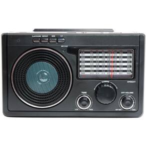 Informações do produto: Tipo: Rádio analógico Bandas: Am 530 - 1600KHz / Fm 88 - 108MHz / Tv 2-5CH / Sw 3.2 - 22MHz Alimentação: Fonte 6V ou 4 Pilhas D Potência: 3W Alto-falante: 4 Polegadas Entrada Fone de ouvido: Sim Entrada aux: Não Entrada Usb: Sim Voltagem: Bivolt 110V/220V Medidas: L= 26cm A= 15cm C= 8cm Alça: Sim Cor: Preto Conteúdo da embalagem: 01 Rádio 01 Cabo de força
