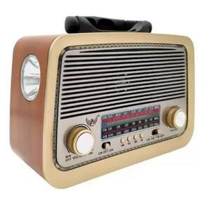 Rádio Retrô Vintage Am Fm Sw Mp3 com Lanterna Recarregável - Este é um rádio estilo retro, com Bluetooth, entrada para Pen drive E cartão de memória. - Ele é construído em matérias de alta qualidade, gerando um ótimo Acabamento. - Possui uma ótima captação de rádio AM/FM. com Antena - Pode ser diretamente na tomada 110/220v, ou fora dela, com Sua bateria recarregável de ótima autonomia. CARACTERÍSTICAS - Entrada Usb Pendrive - ção FM/AM/SW - Cartão SD Não Incluso - Entrada Auxiliar P2 - Bateria interna recarregável - Funciona direto na tomada - Entrada para duas pilhas grande não inclusas - Alça reforçada para transporte - Com lanterna - Iluminação frontal azul opcional - Cor Marrom Brilho ESPECIFICAÇÕES -marca: Altomex -modelo: A3199BT -alimentação AC Bivolt: 110v/50 Hz - 220v/60 Hz Com chave de acionamento -alimentação DC: 3V 400mA - 2 Pilhas tipo 'D' Grande não inclusas -entradas: USB/SD/AUX. -bateria interna -FM: 88-108MHz -AM: 530-1600KHz -SW: 8.0 - 16MHz -potência de saída: 5W -medida: 21 cm x 14 cm x 9 cm -taxa de ruído : 45dB Itens Inclusos: -01 Rádio portátil - A-3199BT -01 Cabo de alimentação -01 Manual de instruções Certificado de homologação da Homologação Anatel: 005491708855 Marca: Não Informado Ean: 7795855266109