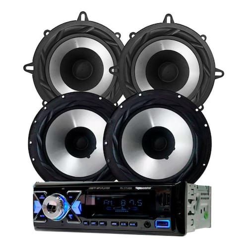 O kit de produto Rádio Roadstar RS2714BR com 2 USB/SD/FM/AUX, acompanhado por 2 Falantes Bomber de 6" (100W) e 2 Falantes Bomber de 5" (100W), é uma solução abrangente para aprimorar o sistema de áudio automotivo. O rádio oferece conectividade Bluetooth, 2 portas USB, leitor de cartão SD, sintonizador FM e entrada auxiliar, proporcionando uma ampla variedade de opções para reprodução de música. Os Falantes Bomber de 6" e 5" complementam o conjunto, entregando potência de 100W cada, resultando em uma experiência sonora imersiva e de alta qualidade. Com este kit, os entusiastas de áudio automotivo podem desfrutar de viagens mais envolventes, onde a qualidade sonora se destaca em cada momento.