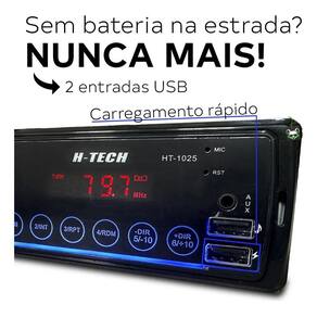 Bem-vindo a koala parts a sua escolha certa para peças e acessórios automotivos - há mais de 10 anos oferecendo qualidade e confiança. Rádio som automotivo mp3 com bluetooth 2 usb's entrada auxiliar e display led Conectividade sem limites Conecte seu smartphone via bluetooth e desfrute de suas músicas favoritas ou atenda suas chamadas hand-free Potência e qualidade sonora Experimente a melhor qualidade de som com a potência de 4x25w rms que oferece equalização ajustável para se adequar ao seu estilo musical preferido, seja pop, rock, clássico ou flat. Puro estilo - display de led O design elegante com iluminação de painel na cor azul não só adiciona um toque de sofisticação ao interior do seu veículo, mas também facilita a visualização das funções e do relógio digital. Praticidade ao alcance Com entradas usb para pen drive e carregamento de celular, garantindo que você esteja sempre conectado e seus dispositivos sempre carregados, mesmo durante longas viagens. Especificações técnicas: - suporte para chamadas telefônicas mãos-livres hands free ; - entrada de áudio aux; - equalização: pop/rock/class/flat; - compatível com mp3/wma/wav; - alimentação: 12v; - potência: 4x25w; - entrada cabo rca; - entrada usb para pendrive: até 32gb; - entrada usb 2.1a para carregamento de celular; - modo de reprodução: repetido/aleatório/intro; - display de led: azul; - relógio digital. Medidas do produto: - comprimento: 18,5cm - largura: 3.5cm - altura: 5,5cm Medidas da embalagem: - comprimento: 20cm - largura: 8cm - altura: 6,5cm Conteúdo da embalagem - 1 auto radio mp3 h-tech 1025 Recomendamos que a instalação seja feita por um , não nos responsabilizamos pelo mal uso do produto. do vendedor: 1 meses Homologação Anatel: 005491708855 Marca: Não Informado