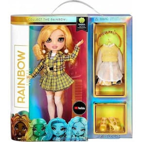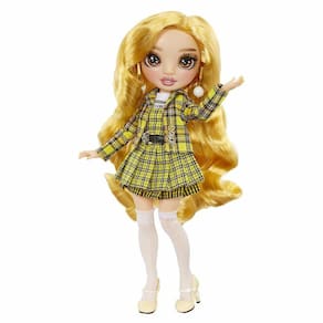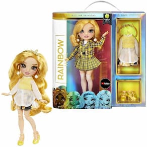 A bela boneca de moda Sheryl Meyer tem um design único e está vestida da cabeça aos pés em amarelo dourado. Ela tem características faciais lindamente detalhadas e belos cabelos. Sheryl vem com duas roupas completas e alguns acessórios. Sua boneca de moda é totalmente móvel. Mostre seus pontos fortes em uma variedade de poses com o suporte de boneca incluído. Colecione um arco-íris inteiro com todas as belas bonecas de moda da Rainbow High.