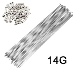 SENQI Raios de aço inoxidável/aço inoxidável 80mm-297mm com tampa de cobre 36pcs - Material: os raios pretos são feitos de aço #45, os raios prateados são feitos de aço inoxidável. - TAMANHO: Vários tamanhos disponíveis, variando de 80 mm a 297 mm, escolha o tamanho que se adapta à sua bicicleta. Diâmetro: 2 mm - Modelo: raios 14G - Incluído na embalagem: 36 x raios 36 x bicos - O comprimento dos raios dependendo do aro, dos cubos e do seu método de tecelagem. Portanto, não temos sugestões sobre isso, você pode medir seus raios antigos primeiro, confirme antes de fazer um pedido.