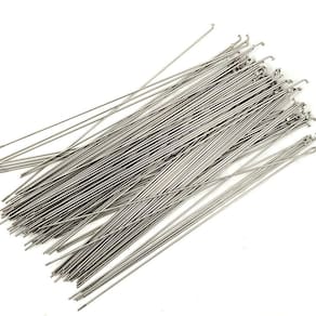 SENQI Raios de aço inoxidável/aço inoxidável 80mm-297mm com tampa de cobre 36pcs - Material: os raios pretos são feitos de aço #45, os raios prateados são feitos de aço inoxidável. - TAMANHO: Vários tamanhos disponíveis, variando de 80 mm a 297 mm, escolha o tamanho que se adapta à sua bicicleta. Diâmetro: 2 mm - Modelo: raios 14G - Incluído na embalagem: 36 x raios 36 x bicos - O comprimento dos raios dependendo do aro, dos cubos e do seu método de tecelagem. Portanto, não temos sugestões sobre isso, você pode medir seus raios antigos primeiro, confirme antes de fazer um pedido.