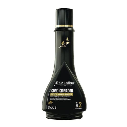 Raiz Latina Condicionador Extrato Folha de Mandioca 250ml Para todos os tipos de cabelo, pode ser utilizado com qualquer shampoo da linha. A função do condicionador é balancear o pH do cabelo e devolver a emoliência melhorando a penteabilidade. Ativos principais, silicones, óleo de germe de trigo, óleo de abacate e óleo de tutano. Confere brilho, proteção, sedosidade, emoliência e umectação. Hidrata os fios proporcionando maciez e nutrição, além de proteger contra agressores externos. Ean: 7891985560503