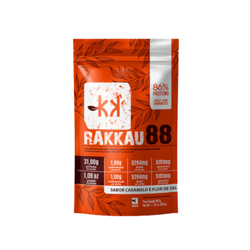 Elaborada com uma proteína de arroz com 90% de concentração proteica, a Rakkau 88 Caramelo e Flor de Sal Proteína Vegana é uma excelente opção para dietas vegetarianas e veganas, pois consegue entregar 82% de proteína por porção com sabor suave de caramelo e flor de sal.