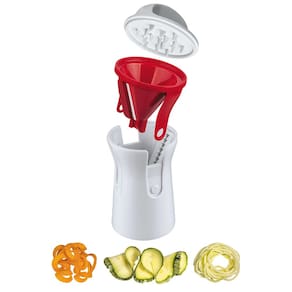 O Ralador 3 em 1 Espiral Multiuso Aço Inox Euro Home - Vermelho é ideal para quem busca inovação e praticidade no preparo de pratos diversos. Com ele você rala legumes variados, transformando-os em fios, fitas ou lascas, proporcionando mais liberdade para o preparo de pratos criativos e saborosos. O design ergonômico junto da potente lâmina de metal evita esforços ao ralar os produtos, facilitando o acesso à alimentação mais saudável e variada.