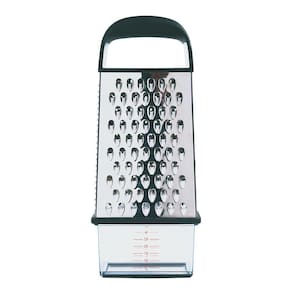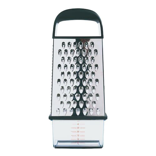 Ralador 4 Lados Com Dispenser Em Aço Inox Oxo Produzido pela Americana OXO Good Grips, este ralador possui 4 faces para diferentes cortes. Dispenser graduado com tampa, alça macia e base emborrachada. Ralador em aço inox de alta qualidade com 4 faces para diferentes tipos de corte, raladores para corte grosso ideal para vegetais e queijos, corte fino para nos moscada e gengibre e fatiador excelente para pepinos e abobrinhas. Seu dispenser com tampa que evita sujeira e desperdício, podendo ser levado a geladeira mantendo o alimento fresco.Ficha técnica:- Código: 4080570101- Marca: OXO - Modelo: Good Grips- Conteúdo da Embalagem: 1 Ralador- Material: Aço inox- Peso: 400g- Dimensões: 30cm x 11cm x 7cm (AxLxP)- Garantia: 3 Meses - Contra defeito de fabricação Sobre a Marca - Há mais de 25 anos atrás, Sam Farber percebeu que sua esposa, Betsey, estava tendo problemas para segurar confortavelmente o seu peeler por conta da artrite, o que o fez pensar: por que as ferramentas comuns da cozinha costumam machucar as mãos? Por que não existem ferramentas confortáveis e fáceis de usar? E assim ele descobriu uma oportunidade de ajudar não só sua esposa, como tambem diversas outras pessoas. Desde então, a OXO criou em toda sua história mais de 1000 diferentes produtos para diversas finalidades e áreas da casa, e todos sob o conceito do Design Universal, que tem como foco a facilidade de utilização, a qualidade, a funcionalidade e a eficiência comprovada. Garantia - 3 Meses - Contra defeito de fabricação Mais Informações - Cor: Aço inoxOrigem: Importado Medidas aproximadas do produto:Altura: 30cmLargura: 11cmComprimento: 7cmPeso: 400gr