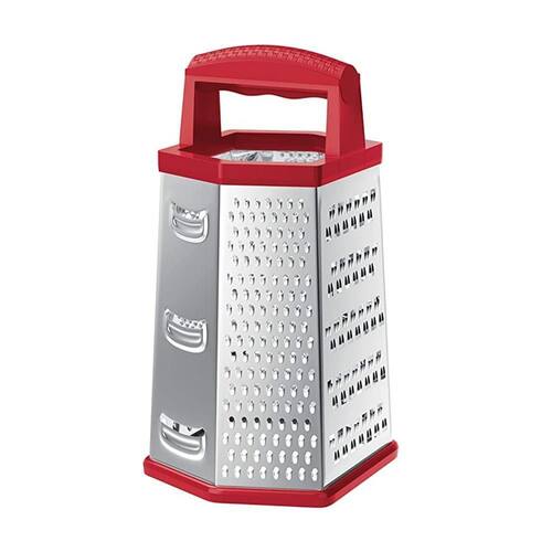 Ralador 6 Faces De Inox 19 m C/Alça P/Cozinha Queijo Legumes Cor: Vermelho Ralador 6 Faces De Inox 19 m com alça.