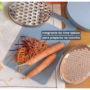 Dupla função: ralador e recipiente com tampa de armazenamento.