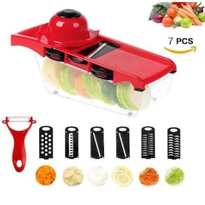 Prepare refeições deliciosas em minutos com o nosso cortador de verduras multifuncional com lâminas afiadas de aço inoxidável e vários acessórios, este cortador é perfeito para fatiar, picar, cortar em cubos e muito mais.