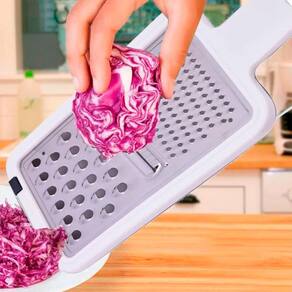 Com laminas de aço inox, têm detalhe de apoio no cabo de polipropileno que dá conforto à pega e segurança durante o manuseio. O design moderno, as cores e o furo passante permite que fiquem expostos, pendurados na cozinha. Possui três opções de corte. O funcionamento é intuitivo. Lâminas de aço inox de ótima durabilidade, forte, sem dobra ou corrosão, reforçado com plástico. Útil para as mais diversas funcionalidades. Prático e leve para transportar. Resultados fantásticos com o mínimo de esforço, você pode ralar e fatiar rapidamente uma variedade de alimentos como queijo, batata, abóbora, cenoura, limão e pepino. Multifuncional com uma alça confortável que lhe dá controle total. Marca: Não Informado Ean: 7899441526629