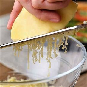 O ralador profissional em inox funciona de maneira bem simples. Basta posicionar o alimento sobre a superfície do inox e realizar o movimento de vai e vem ao longo do produto. Em instantes, o alimento será ralado em frações muito pequenas. As lâminas em aço inox facilitam no processo e, além disso, fazem com que o fatiador tenha uma durabilidade muito grande. Outro grande diferencial está no formato dos orifícios, que permitem uma extração muito fina, fazendo com que o ralador seja altamente apropriado para o corte de raspas de limão, queijo ou temperos. Por fim, devido ao material inteiramente em aço inoxidável, o ralador pode ser utilizado para fins domésticos ou até mesmo com fins profissionais. Mais características - Lâminas em Aço Inoxidável; - Estrutura compacta e reforçada; - Design anatômico e prático; - Design Anatômico; - Corta os alimentos sem deixar grandes pedaços; - Facilidade de uso e leveza no movimento; - Não deixa cheiro nas mãos; Dimensões Largura: 4 cm; Comprimento: 34 cm; Ean: 7899670806516