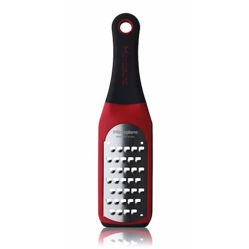 Ralador Lâmina Extra Grossa Artisan Series Vermelho Microplane Os raladores Microplane combinam alta performance com um design ergonômico. Com lâminas ultra afiadas de aço inoxidável fabricadas nos EUA, eles oferecem cortes precisos para raspas delicadas ou mais grossas, ideais para frutas, queijos, vegetais e especiarias. O cabo confortável e a base antiderrapante garantem um uso estável e seguro. Além disso, vêm com uma tampa protetora reutilizável e podem ser lavados na lava-louças, tornando a limpeza muito mais fácil. Perfeitos para chefs e entusiastas da culinária, esses raladores trazem qualidade e praticidade para sua rotina diária na cozinha. Destaques: Lâmina de Aço Inox Ultra Afiada: Corta em vez de rasgar os alimentos, preservando o sabor e o aroma. Ideal para Ingredientes Volumosos: Perfeito para ralar queijos firmes, repolho, abobrinha, batatas e outros vegetais de forma rápida e eficiente. Design Ergonômico: O cabo com toque suave e a base antiderrapante garantem conforto e estabilidade durante o uso. Praticidade na Limpeza: Pode ser lavado na lava-louças, facilitando o seu dia a dia na cozinha. Versatilidade: Use para ralar queijos, frutas, especiarias e legumes com resultados perfeitos. Marca Microplane Cor Preto e Vermelho Material Aço Inox Comprimento 26,5cm Largura 7cm Altura 1,5cm Modo de Lavagem Lava-louças, Lavagem a Mão 3 meses contra defeito de fabricação Marca: Não Informado Ean: 098399421384