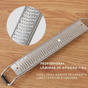 Ralador fino tipo zester em inox - precisão e versatilidade na cozinha Descrição do produto: Com o ralador fino tipo zester, você transforma o preparo dos alimentos em uma tarefa rápida e eficiente. Perfeito para ralar cascas de limão, laranja, queijos, alho, gengibre, cebola e muito mais, ele entrega resultados impressionantes com mínimo esforço. Seu diferencial está nas lâminas ultrafinas e super afiadas, que garantem cortes precisos e uniformes. Fabricado em aço inoxidável de alta durabilidade, é um item essencial para chefs, cozinheiros e amantes da cozinha criativa. Benefícios: - ideal para raspas finas de frutas cítricas e queijos duros - lâminas afiadas que reduzem o esforço no preparo - cabo ergonômico e antideslizante para mais segurança - resistente à oxidação, fácil de limpar e prático de guardar - leve e portátil - ótimo para uso doméstico ou Especificações técnicas: - material: aço inoxidável - cabo: plástico com acabamento antideslizante - cores: cabo azul - acompanha capa protetora Medidas aproximadas: - comprimento total: 38,9 - largura da lâmina: 3,6 cm Conteúdo da embalagem: - 1 ralador fino zester cabo azul A dona li utilidades traz produtos que combinam qualidade, praticidade e durabilidade para facilitar o seu dia a dia. Transforme a forma como você cozinha. Garanta já o seu ralador fino tipo zester e prepare receitas incríveis com muito mais agilidade Marca: Não Informado