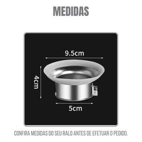 - Marca: Focuslar - Modelo: Ralo Sifão Mal Cheiro Cozinha Banheiro Jardim - Material: Aço inoxidável 304 - Forma: Redonda - Acabamento: Escovado - Altura: 4 cm - Largura: 10 cm - Diâmetro de entradas: 10 cm - Diâmetro de saídas: 5 cm - Lugares de colocação: Banheiro, Cozinha, Jardim, Área de serviço Marca: Não Informado