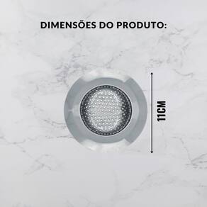 Design Compacto e Discreto: Com 11cm de diâmetro, ele se encaixa perfeitamente na maioria dos ralos de pias, adicionando um toque de elegância discreta com seu acabamento em prata inox. Ralo de Pia Inox 11cm Escorredor de Resíduos