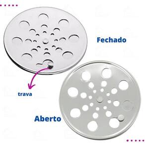 Ralo grelha inox redondo com função abre e fecha 15 cm